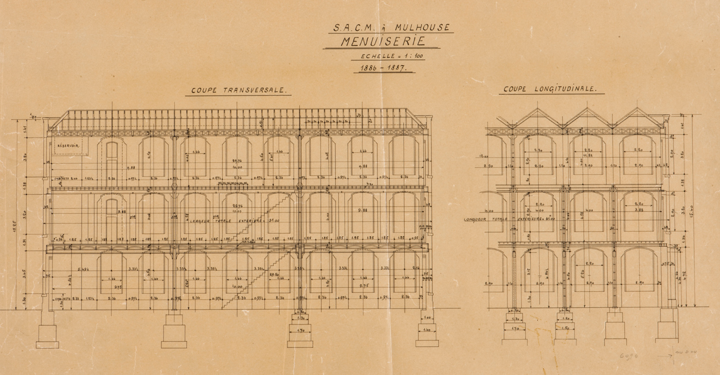 Le bâtiment rénové fait partie des 14 immeubles appartenant autrefois à l’une des plus importante entreprise d’Europe : la SACM (Société Alsacienne de Construction Mécanique). Près de 4000 personnes travaillaient sur ce site. L’entreprise construisait des machines outils, des lignes industrielles complètes destinées notamment au textile ainsi que des locomotives.
